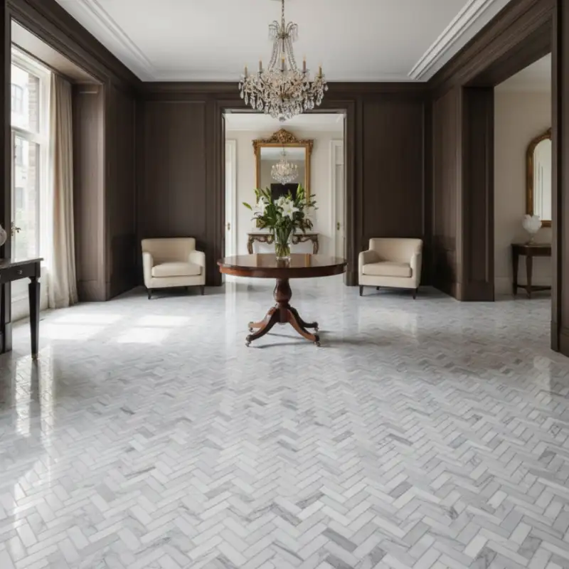 To protect your Milas White marble mosaics and moldings, apply a high-quality penetrating sealer after installation and re-seal periodically, especially in wet or high-traffic areas. Clean regularly using a pH-neutral stone cleaner. Avoid acidic or abrasive products, as they may damage natural marble surfaces.