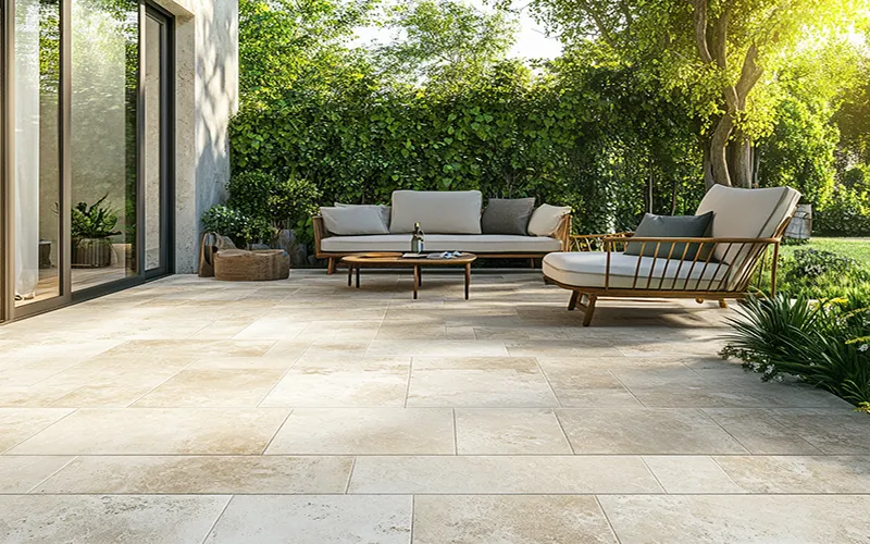 Explore a wide range of stone types, finishes, and formats tailored for exterior use—including travertine pavers, marble tiles, and French pattern sets.
