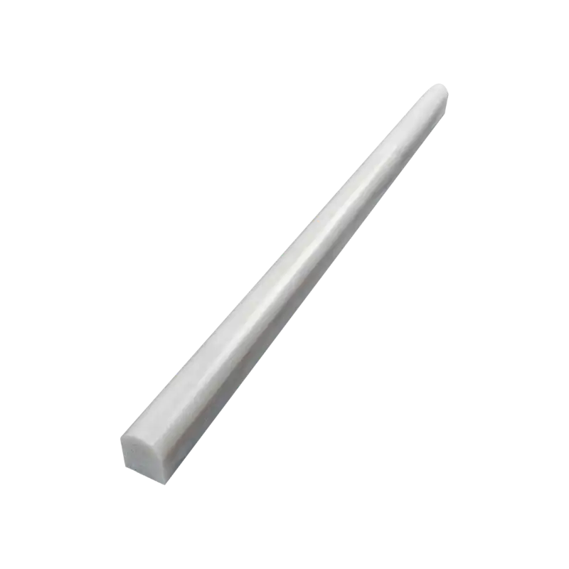 The Milas White Honed Pencil Liner is a refined marble trim designed to bring balance and softness to tile installations. Made from authentic Milas White marble, this pencil liner features a smooth honed finish and a gently rounded profile that creates elegant transitions without overpowering the overall design.