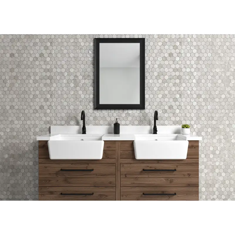 The polished finish of this honeycomb mosaic adds brightness and sophistication to any design. Its versatile color palette and natural veining make it a timeless choice for upscale residential and commercial projects.
