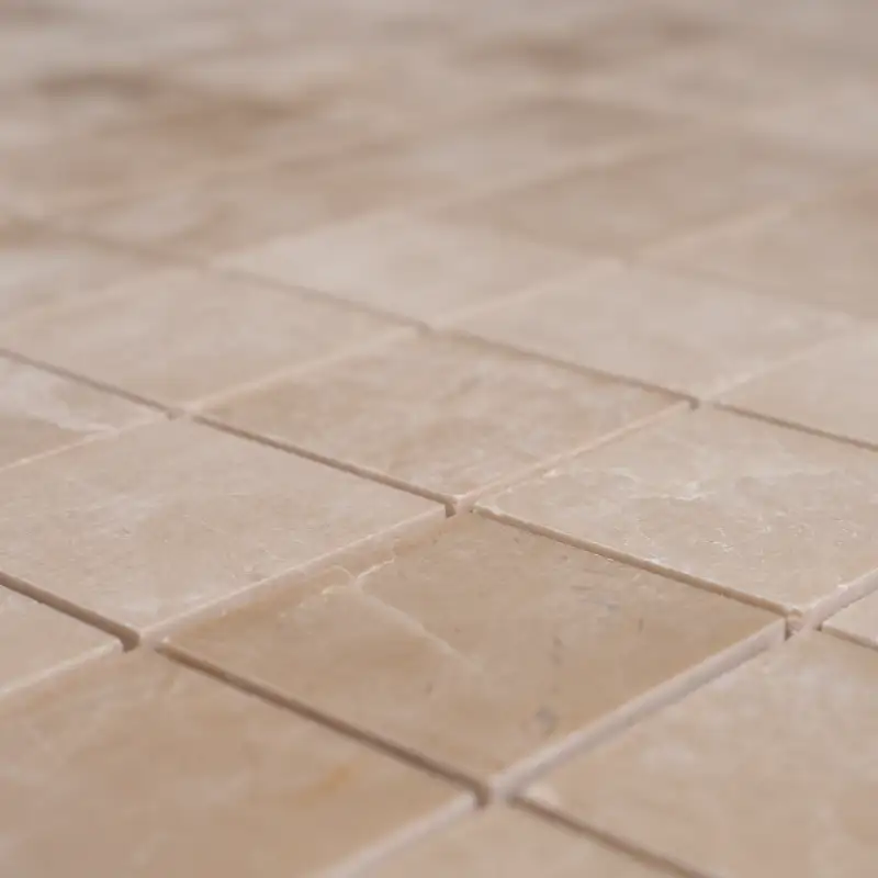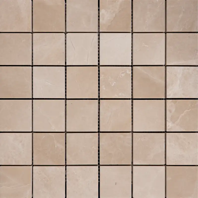 The Botticino 2×2 Honed Marble Mosaic Tile showcases the timeless beauty of beige marble with a soft, matte surface. Its gentle veining and natural tones bring warmth and sophistication to any space.