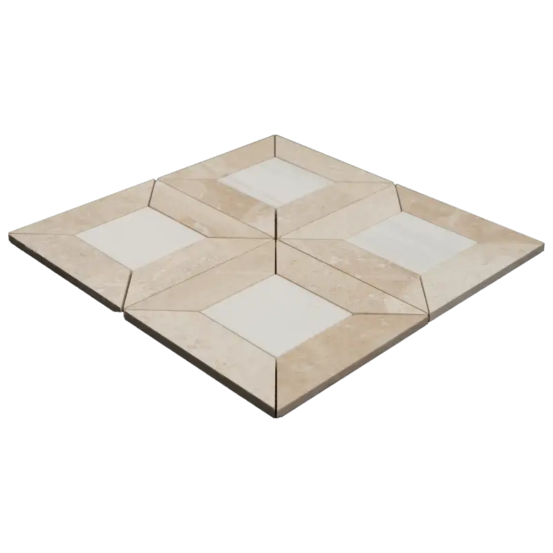 clean, light contrast of Dolomite stone, arranged in a classic star and square pattern.