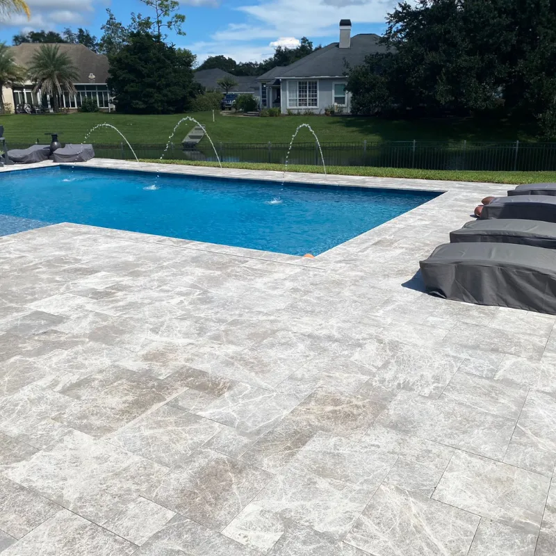 Luna Gray is a refined marble paver that combines the timeless elegance of natural stone with a soft silver-gray palette. The leather finish enhances its texture, offering subtle sheen and slip resistance ideal for patios, pool decks, and high-end interior floors.
