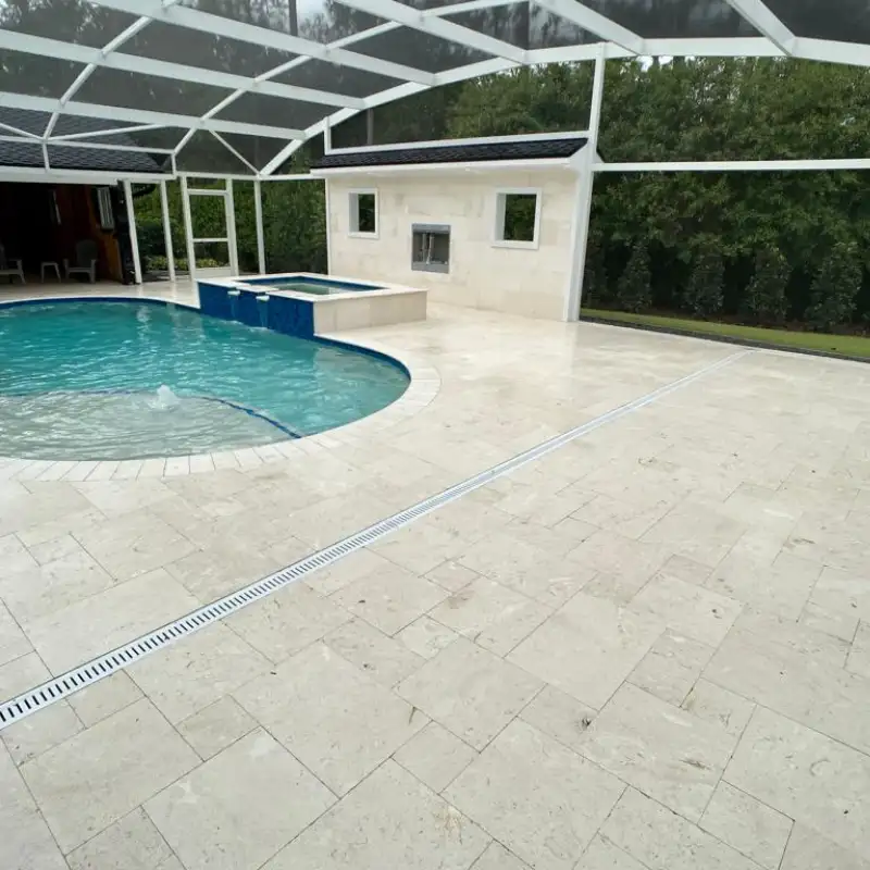 The tumbled finish softens the edges and surface, giving the paver a naturally aged appearance while improving slip resistance. This makes Myra Shell Limestone an excellent choice for patios, pool decks, walkways, and outdoor living areas where both beauty and functionality matter.