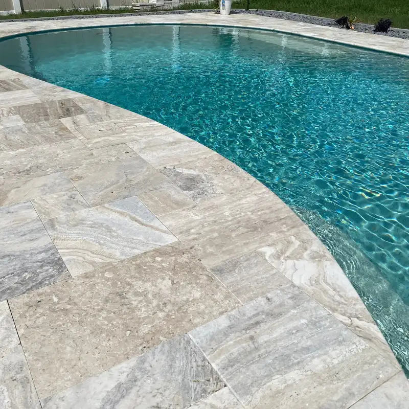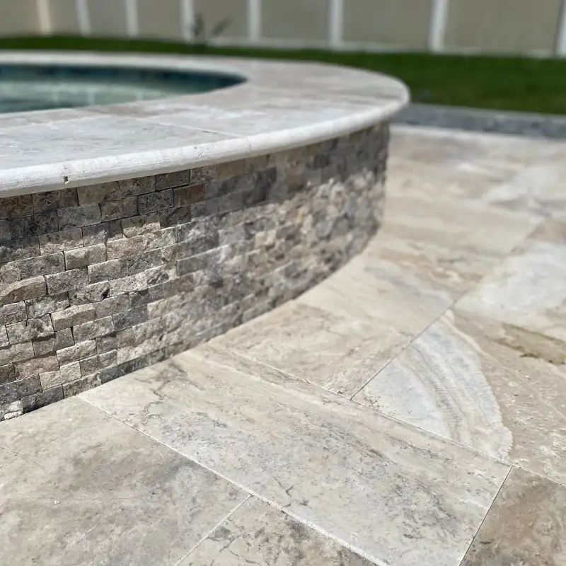 Travertine is a natural stone and may show tonal variation, surface pits, and veining—these are inherent characteristics, not defects. Always dry-lay and inspect materials before final installation. Professional installation is recommended for best performance and longevity.