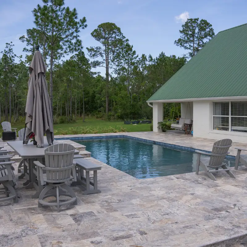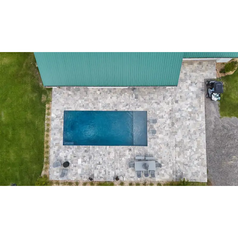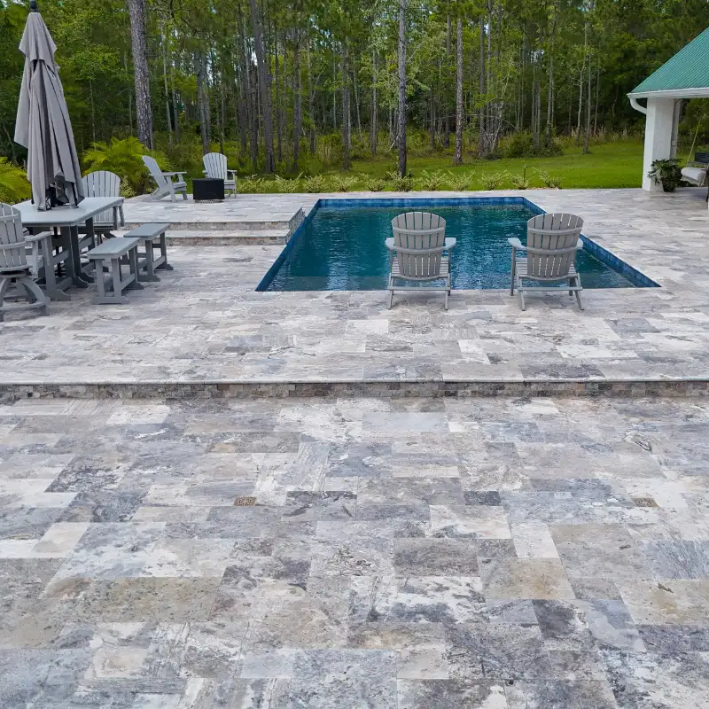 The Silver Tumbled 16×24 Travertine Paver delivers cool gray tones, a slip-resistant tumbled finish, and clean lines—ideal for patios, pool decks, and paths.